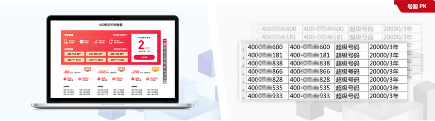 4008、4009全號源,套餐性價比高。 - 號碼資源有限,無選號庫,認(rèn)為提高號碼等級,